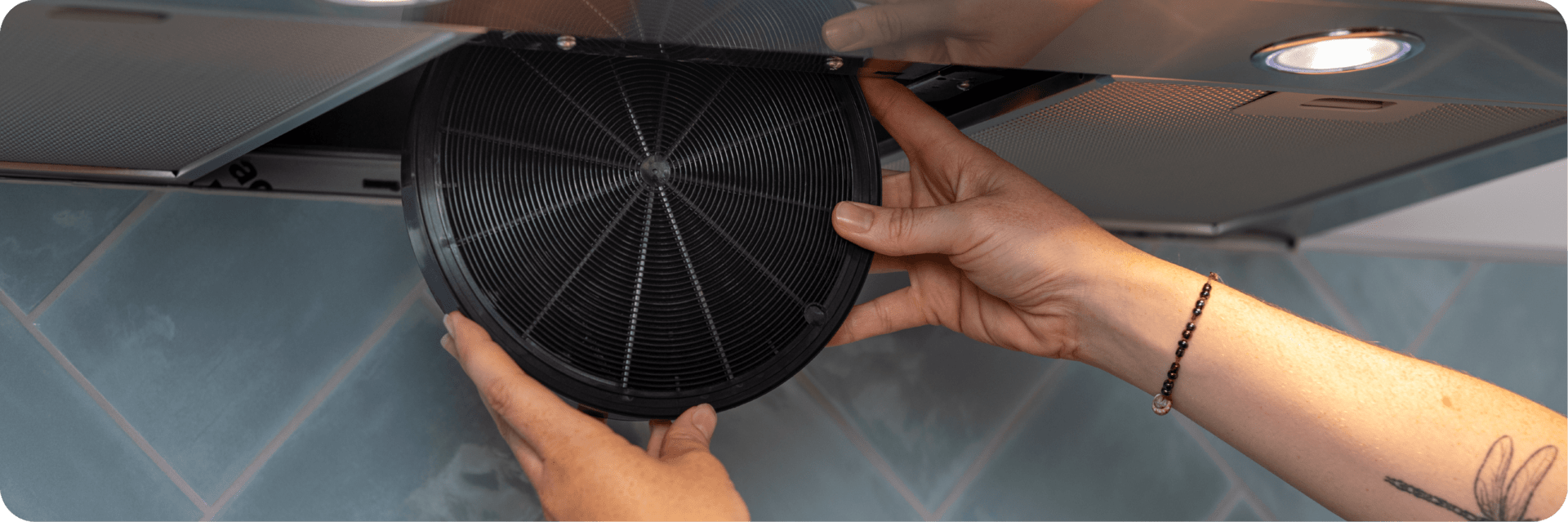 Esistono due tipi di filtri estrattori: filtri metallici (noti anche come filtri grassi) e filtri a carbone. I filtri per grassi metallici sono i filtri visibili sul fondo della cappa. Questi filtri filtrano il grasso rilasciato durante la cottura. Se si dispone di un sistema di ricircolo - si dispone di questo quando la cappa non trasporta l'aria fuori, ma soffia di nuovo in cucina - c'è anche un filtro a carbone sotto i filtri metallici. Questo ha la funzione di neutralizzare gli odori di cottura.